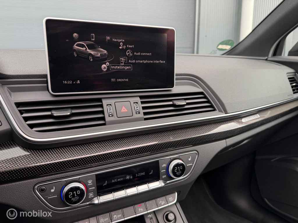 De Audi SQ5 3.0 TFSI (2018) met Virtual Cockpit, full map navigatie met harddisk, DAB, Bluetooth, draadloze telefoonlader, WiFi en connected services biedt een moderne zakelijke infotainment-ervaring. Virtual Cockpit en head-up display verbeteren navigatie en ritinformatie, terwijl draadloos laden en telefonie handsfree werken vergemakkelijken. Voor bedrijven die veel onderweg zijn zijn realtime verkeersinformatie en integratie met fleetsoftware vaak praktijkversterkend.