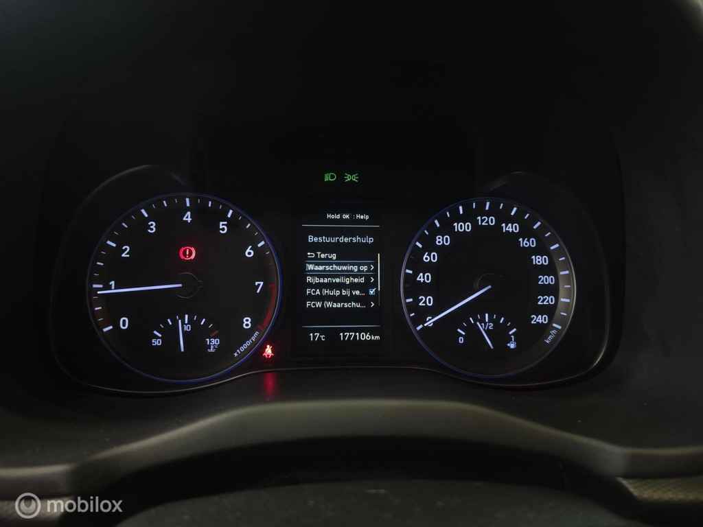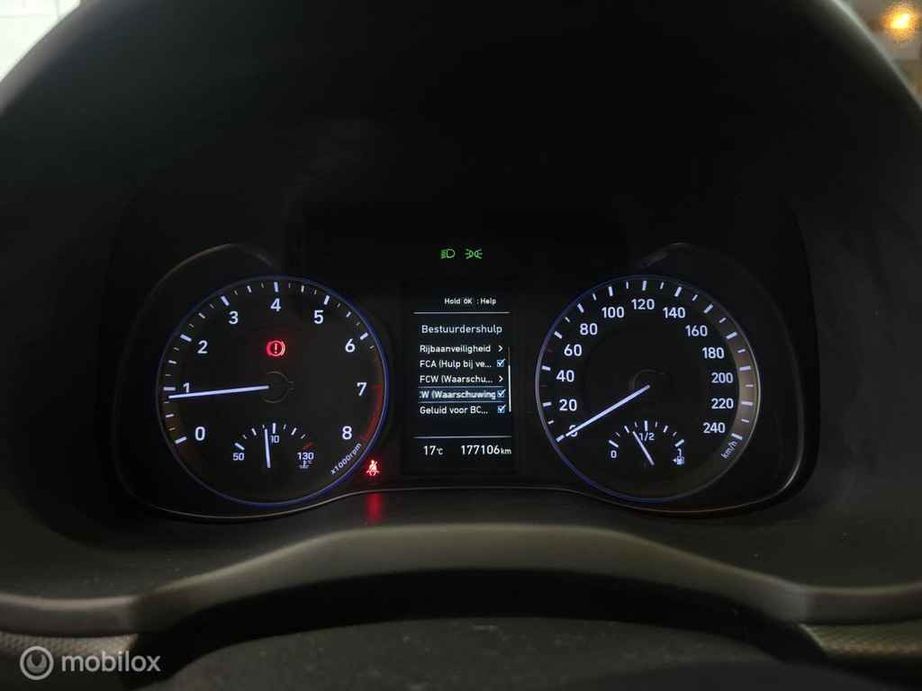 De Hyundai KONA 1.0 T-GDI benzine handgeschakeld uit 2018 is uitgerust met diverse geavanceerde veiligheidsvoorzieningen die aantrekkelijk zijn voor zakelijk leasen en zakelijk rijden. Standaard beschikt deze uitvoering over Autonomous Emergency Braking, een rijstrooksensor, dodehoekdetectie, hoofd- en zijairbags, knieairbag, grootlichtassistent en een automatisch dimmende binnenspiegel. Deze systemen verhogen de veiligheid tijdens woon-werkverkeer en lange zakelijke ritten.