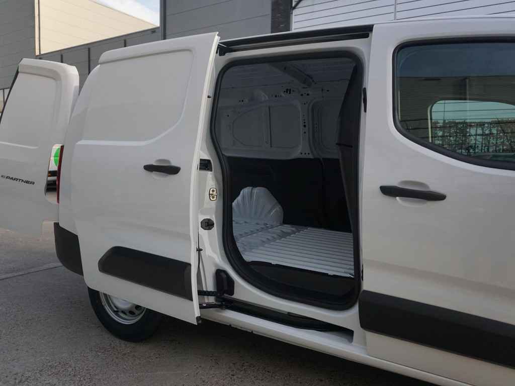 De Peugeot e-Partner L2 50 kWh biedt een laadvolume tot 3,9 m³ en een laadvermogen van 780 kg. Dankzij de zijschuifdeur rechts en de volledig te openen achterdeuren is laden en lossen eenvoudig, zelfs op krappe locaties. Dit maakt de e-Partner zeer geschikt voor diverse zakelijke toepassingen.